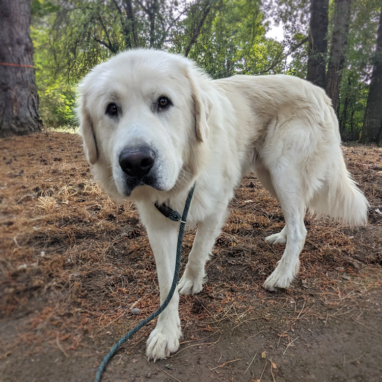 Please do your research on the Great Pyrenees breed, and then come visit this big guy "Jack"! Jack is timid, loves his friends and is easy to walk in quiet places - busy city life is NOT a match for this boy. He also likes other dogs (Jack may be a bit unsure at first, then really enjoys the company ) ps sometimes other dogs are intimidated by very dogs and may try to bully them)